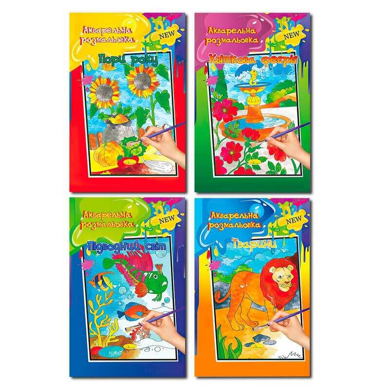 гр Акварельна розмальовка А4 РМ-17 (20) ВИДАЄТЬСЯ МІКС ВИДІВ /ЦІНА ЗА 1 ШТ/ "Апельсин", 4 вида