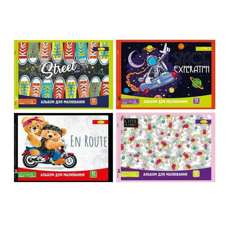 гр Альбом для малювання, 12 арк. АМП-С-12 / АП-0302 скоба з перфорацією (36) "Апельсин" ВИДАЄТЬСЯ МІКС ВИДІВ