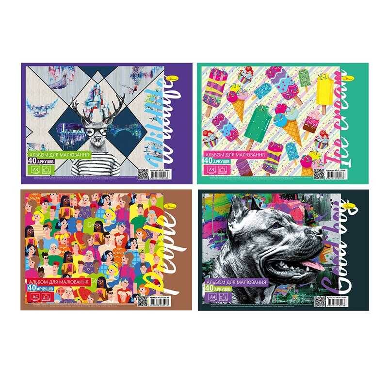 гр Альбом для малювання 40 аркушів АП-П-120-40 / АП-0310 (12) "Апельсин" 4 види, лаковий, на пружині, 12 шт в упаковці ВИДАЄТЬСЯ МІКС ВИДІВ