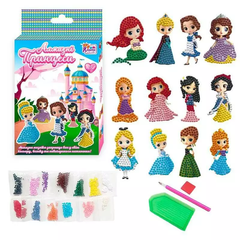 гр Алмазні стікери "Принцеси" 62291 (60) "4FUN Game Club", наліпки, стилус, силіконовий клей, піддон, алмази, в коробці