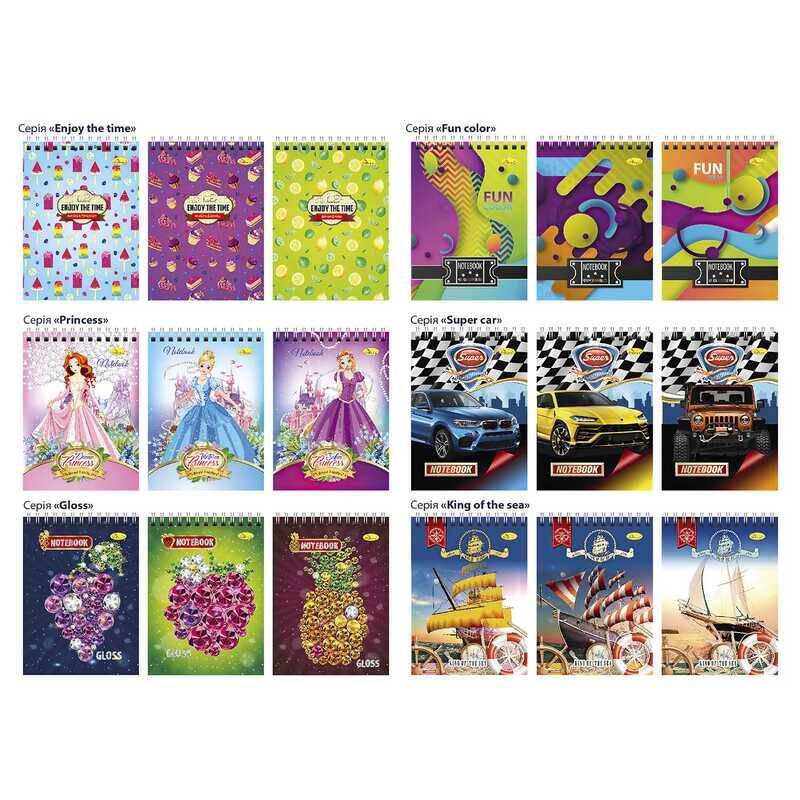гр Блокнот Б-П6-80 / АП-1604 (10) А6, 80арк, пластик.,пружина збоку "Апельсин" ВИДАЄТЬСЯ МІКС ВИДІВ