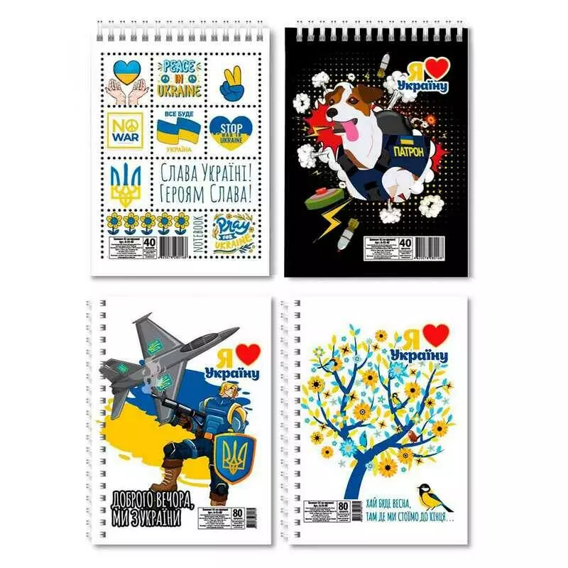 гр Блокнот "Патріотичні" Б-Л5-40 / АП-1905 (20) А5, 40 арк., лаковка, 2 види, пружина збоку та пружина зверху ВИДАЄТЬСЯ МІКС ВИДІВ "Апельсин"