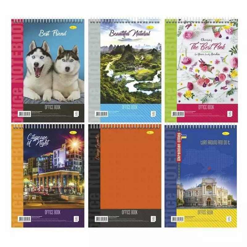 гр Блокнот В-Л4-40 (16) А4, 40 арк, лаковка,пружина зверху "Апельсин" ВИДАЄТЬСЯ МІКС ВИДІВ