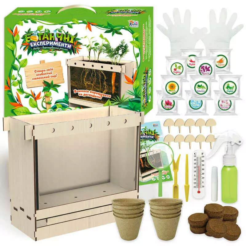 гр Ботанічні експерименти 70228 (6) "4FUN Game Club", ґрунт, бокс, рукавички, клей, садові інструменти, термометр, таблички, насіння, інструкція, в ко
