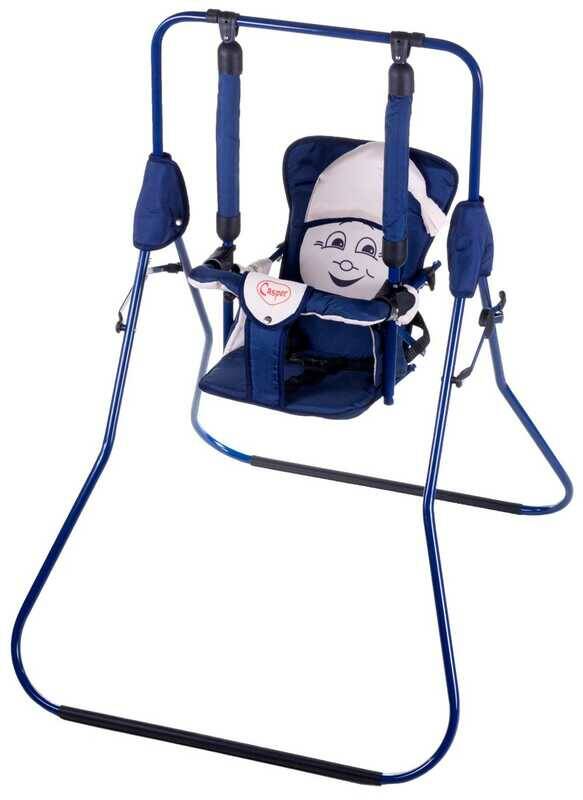 гр Гойдалка підлогова "Алінка" 204815 (1) синій каркас, темно-синя матерія, бежевий гномик