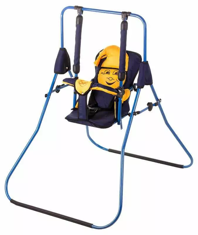 гр Гойдалка підлогова "Алінка" 204877 (1) темно-синій каркас, темно-синя матерія, жовтий гномик, в пакеті