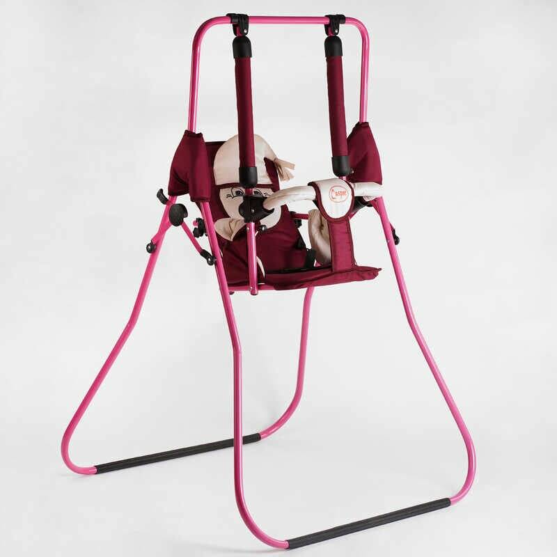 гр Гойдалка підлогова "Алінка" 8035 /205492 (1) рожевий каркас, бордова матерія, бежевий гномик