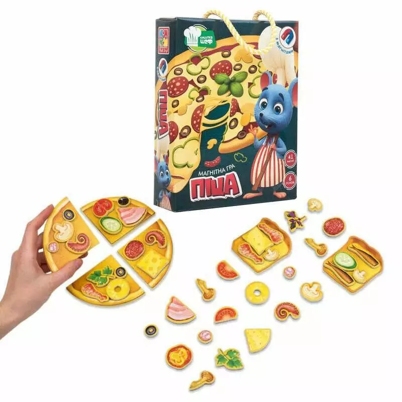 гр Гра настільна "Магнітна кулінарна гра. Піца" VT3004-02 укр. (8) "Vladi Toys", 6 основ, 41 магнітний елемент