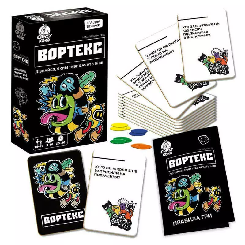 гр Гра настільна розважальна "Вортекс" VT5903-01 (21) "Vladi Toys", 50 карток, 10 жетонів, в коробці