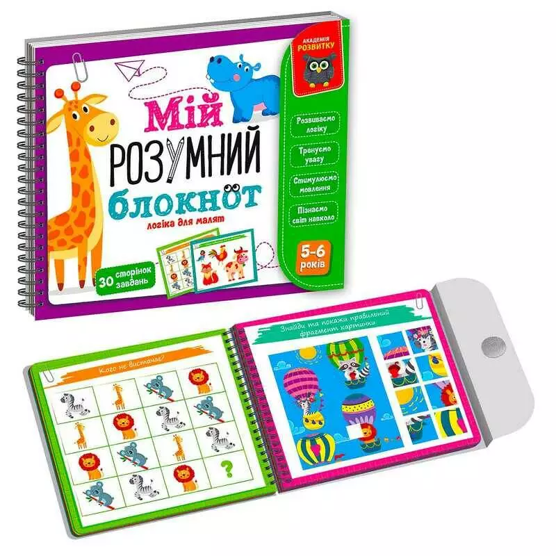 гр Гра розвиваюча навчальна. Академія розвитку "Мій розумний блокнот: логіка для дошкільнят" VT5001-02, "Vladi Toys"