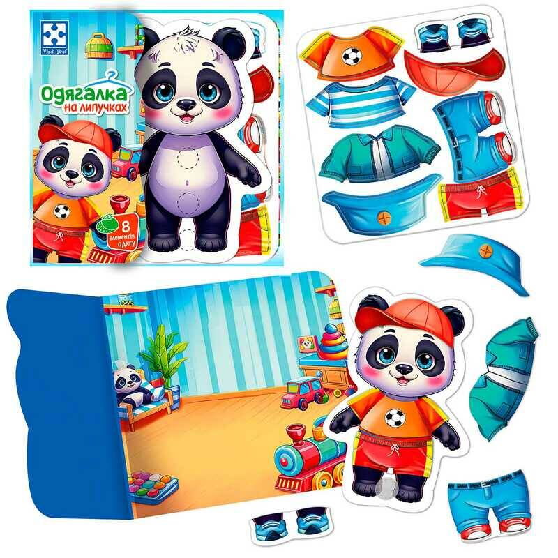 гр Гра з липучками "Панда" VT1320-06 (20) "Vladi Toys", фігурка тваринки, 8 предметів одягу, ігровий фон