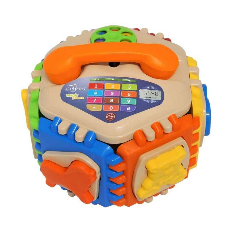 гр Іграшка-сортер "Magic phone" 39784 (14) "Tigres", 27 елементів, знімна телефонна слухавка, циферблат, геометричні фігури, тварини, в сітці