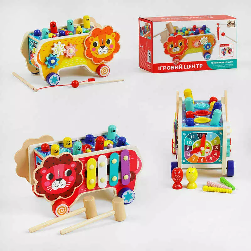 гр Ігровий центр 55202 (24) "4FUN Game Club Wood", "Лев", дерев’яний, ксилофон, магнітна риболовля, стукалка, шестерні, годинник, у коробці