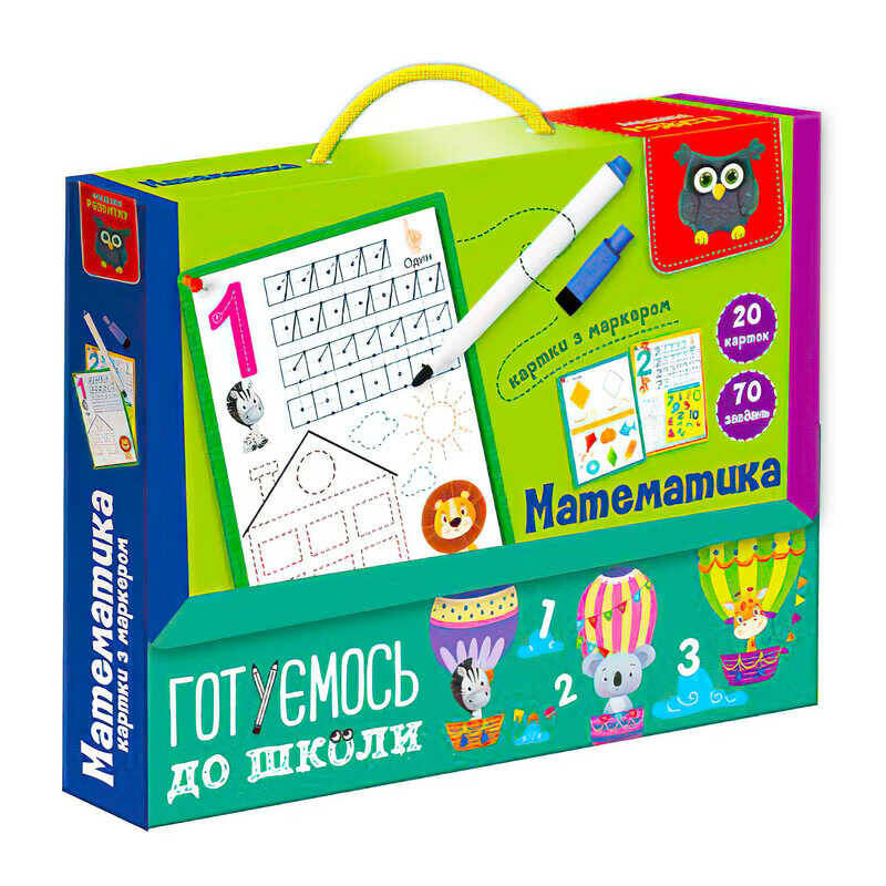 гр Картки з маркером "Готуємось до школи: Математика" (укр) VT5010-22 (18) "Vladi Toys", в коробці