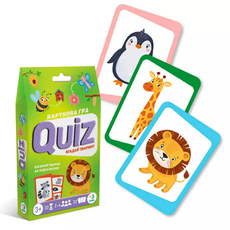 гр Карткова гра "Вікторина: Вгадай тварину!" 301244 (40) "DoDo", 32 картки розміром 107 см, в коробці