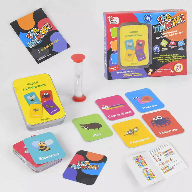 гр Карточная игра "Гра пам`яті - Комахи" UKB-B 0045-6 (36) "4FUN Game Club", песочные часы, на украинском языке, в коробке