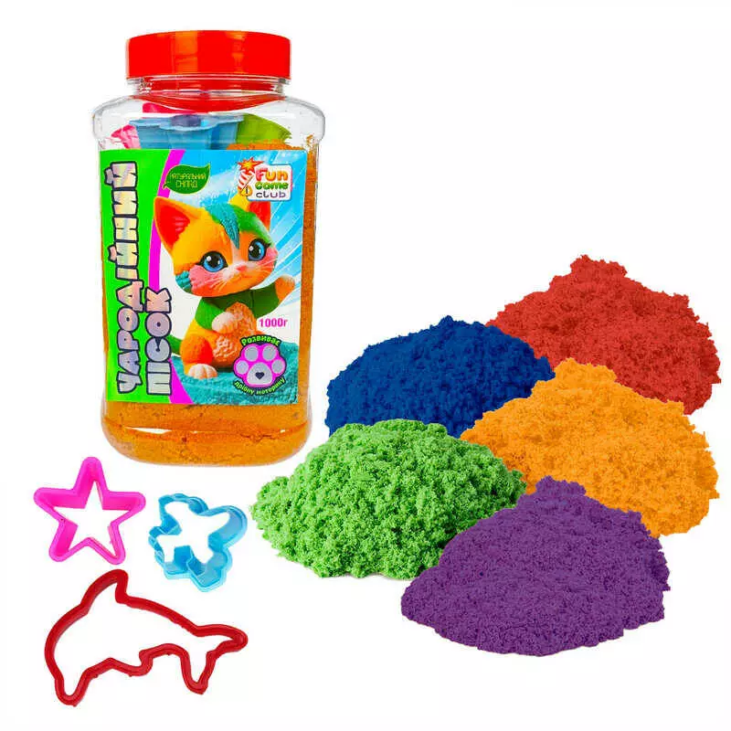 гр Кінетичній пісок 26428 (9) 1кг "4FUN Game Club", 4 формочки, в банці, ВИДАЄТЬСЯ МІКС ВИДІВ