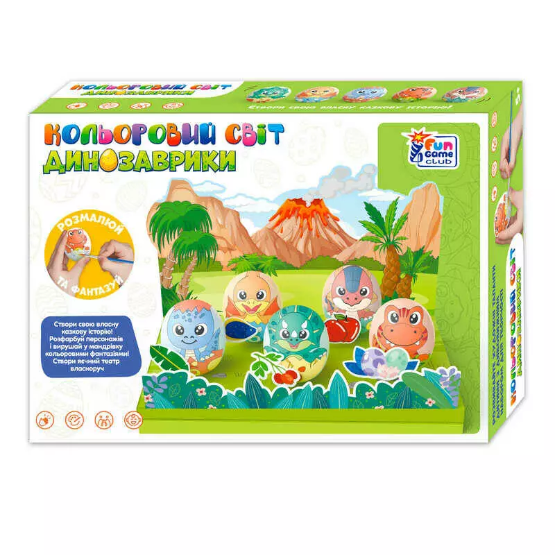 гр Кольоровий світ 55635 (24/2) "4FUN Game Club", "Динозаврики", 5 яєць, фарби, декор, в коробці