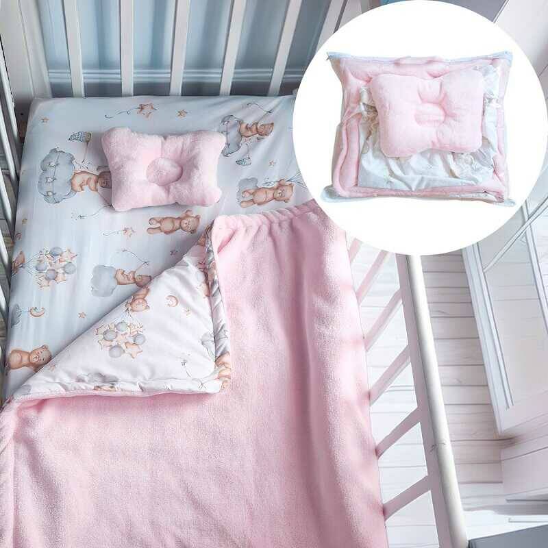 гр Комплект "3 предмети" 76600 (1) "Bimbo" , подушка, ковдра, простирадло на резинці, тканина РАНФОРС, ВЕЛСОФТ, в пакеті
