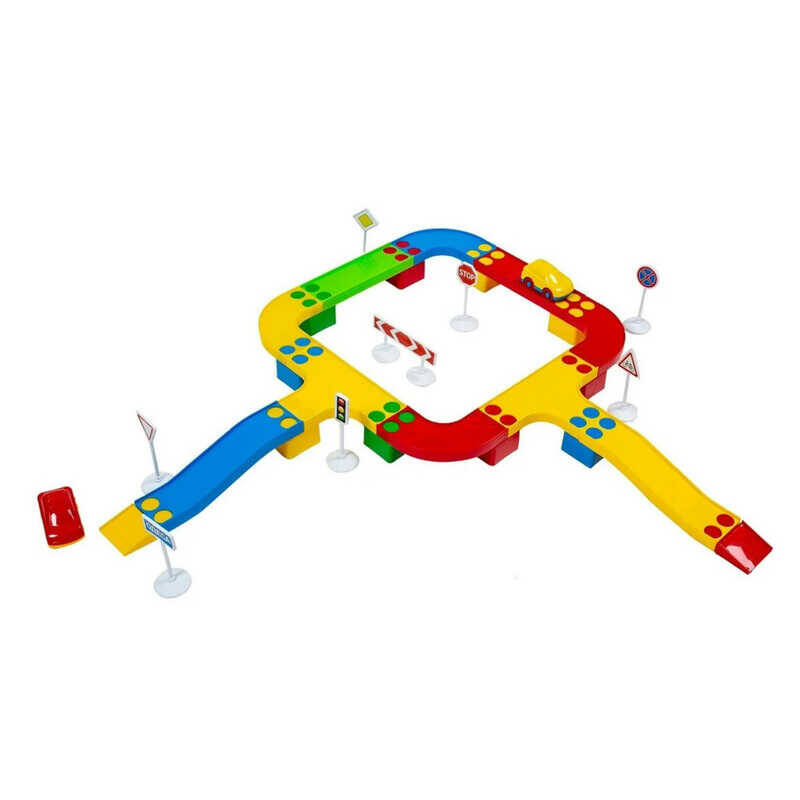 гр Конструктор "Кольорова дорога №2" 114/23 (12) "BAMSIC" 33 деталі, 2 машинки, дорожні знаки, в тубусі