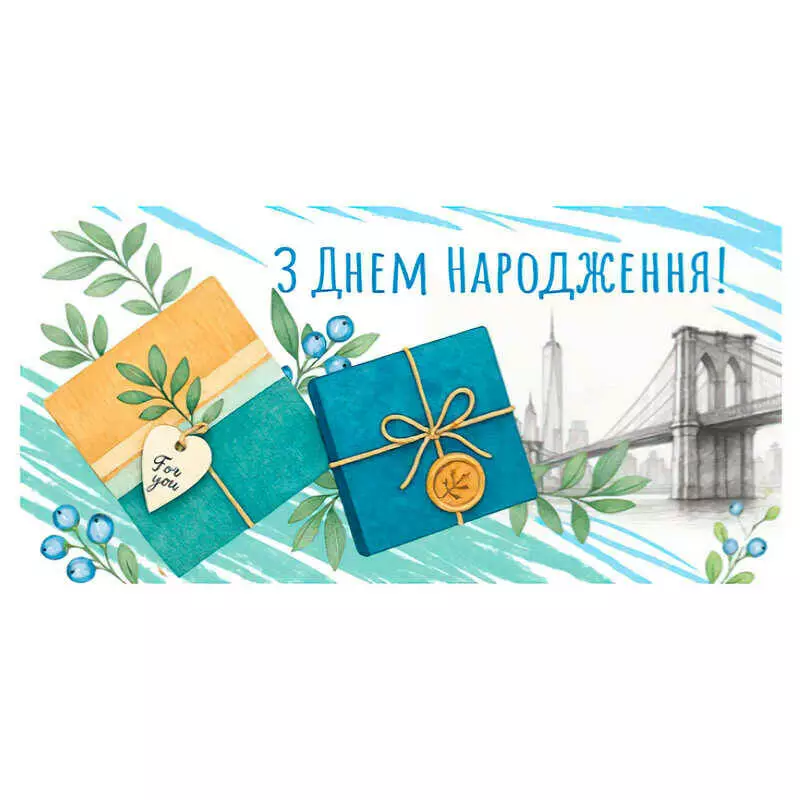 гр Конверт для грошей "З днем народження" Т-161у (1) "Jumbi"