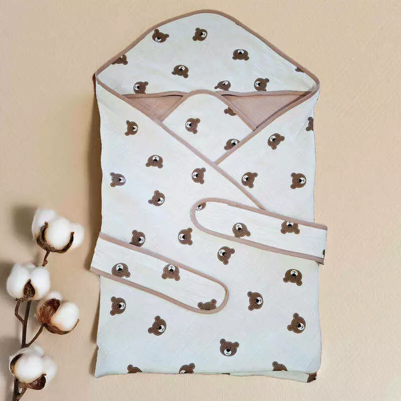 гр Конверт з куточком для немовлят "Ведмежа" 90715 (1) тканина МУСЛІН, розмір 90*90 см "Bimbo", в пакеті