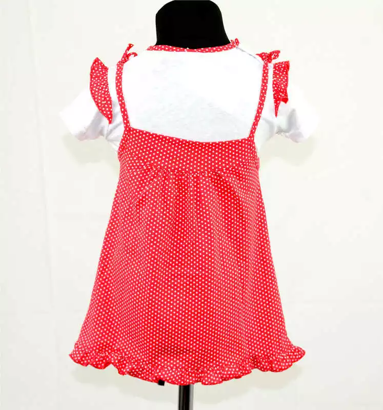 гр КП-204 "1" /р.74/ /красный/ Комплект для девочки : сарафан на завязках, футболка