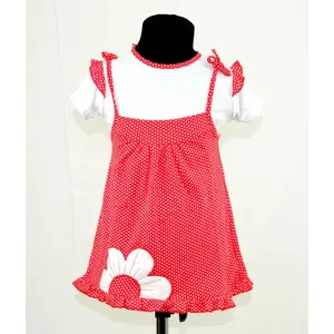 гр КП-204 "1" /р.80/ /красный/ Комплект для девочки : сарафан на завязках, футболка