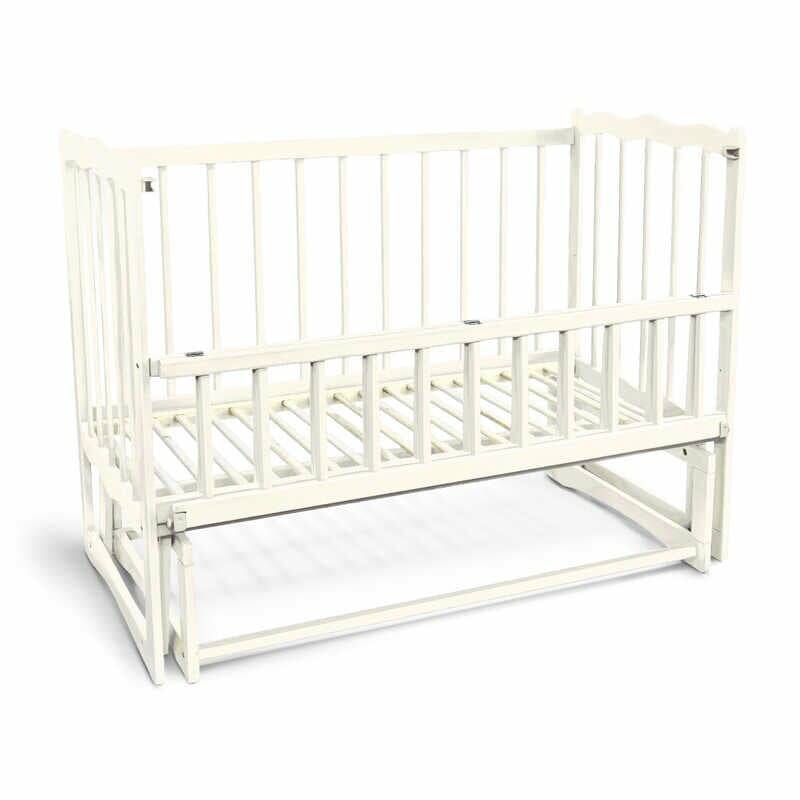 гр Кроватка деревян. маятник - откидной бортик "Сон" (1) ольха - цвет слоновая кость