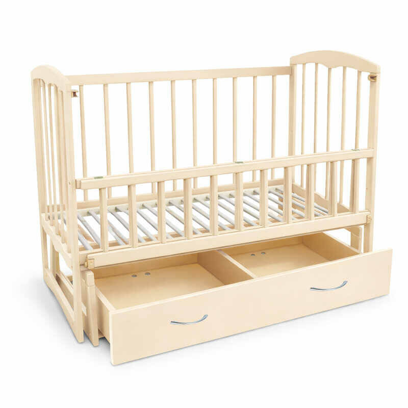 гр Кроватка деревян. маятник+шухляда - откидной бортик "Спим" С-78130 (1) ольха - цвет слоновая кость