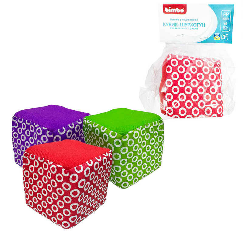 гр Кубик "Шелестун" 13895 (1) "Bimbo", розмір 9х9х9 см, текстильний, шелесткі елементи, в пакеті, ВИДАЄТЬСЯ МІКС ВИДІВ