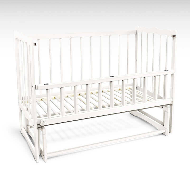 гр Ліжечко дерев`яне маятник - відкидний бортик "Сон" С-137469 (1) вільха - колір білий