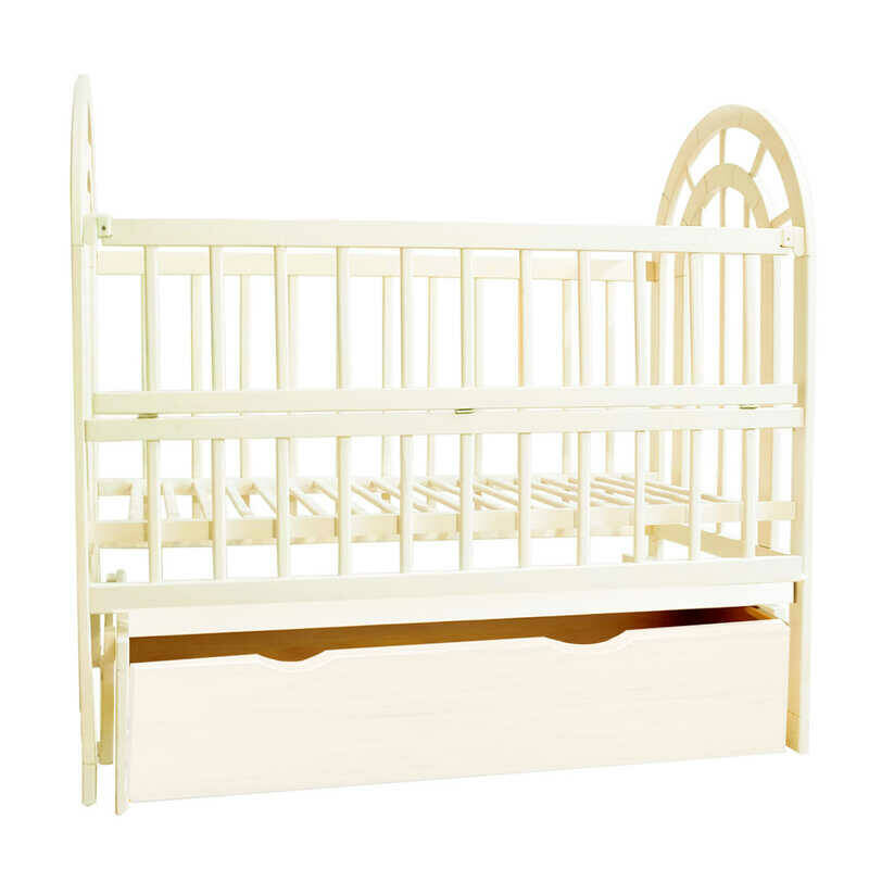 гр Ліжечко дерев`яне, маятник - відкидний борт+шухляда "Арочка" (1) вільха - колір слонова кість