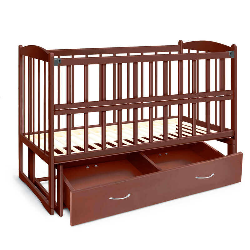 гр Ліжечко дерев`яне маятник+шухляда - відкидний бортик "Няша" (1) вільха - колір шоколад