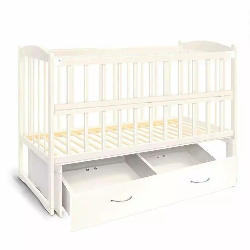 гр Ліжечко дерев`яне маятник+шухляда - відкидний бортик "Няша" (1) вільха - колір слонова кістка