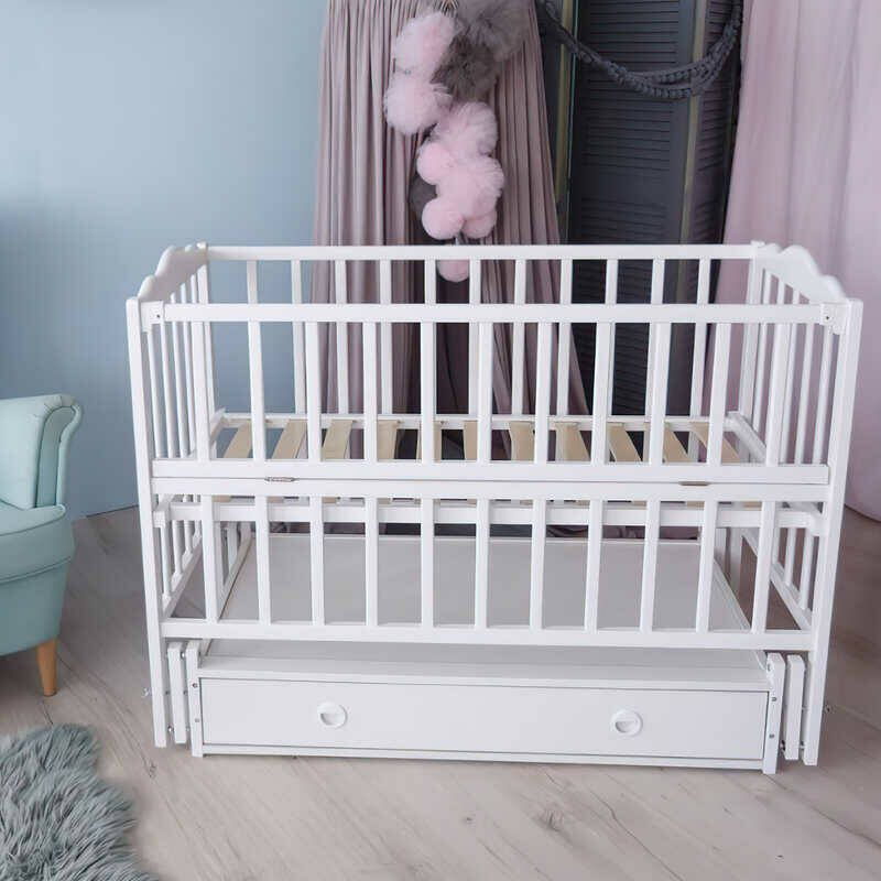гр Ліжечко дитяче "Анастасія" (1) шарнір-підшибник з відкидною боковиною+шухляда, бук (білий)