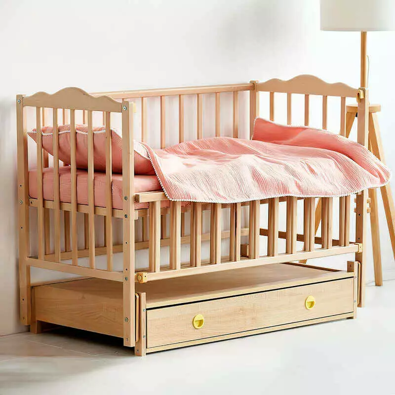 гр Ліжечко дитяче "Ангеліна" (1) шарнір-підшибник з відкидною боковиною+шухляда, бук (натуральна)