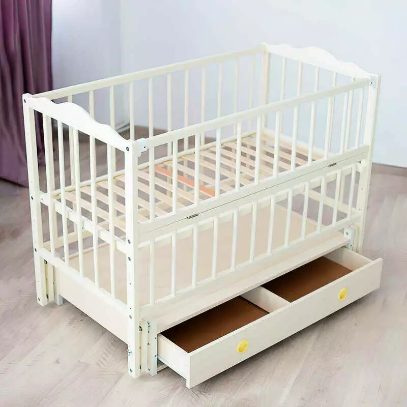 гр Ліжечко дитяче "Ангеліна" (1) шарнір-підшибник з відкидною боковиною+шухляда, бук (слонова кістка)