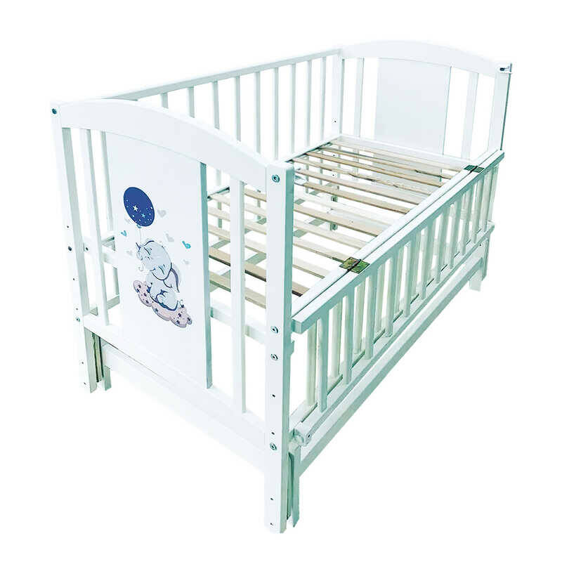 гр Ліжечко дитяче ЛІЛІ-2 "Слоник" (1) шарнір-підшипник з відкидною боковиною, (Білий)