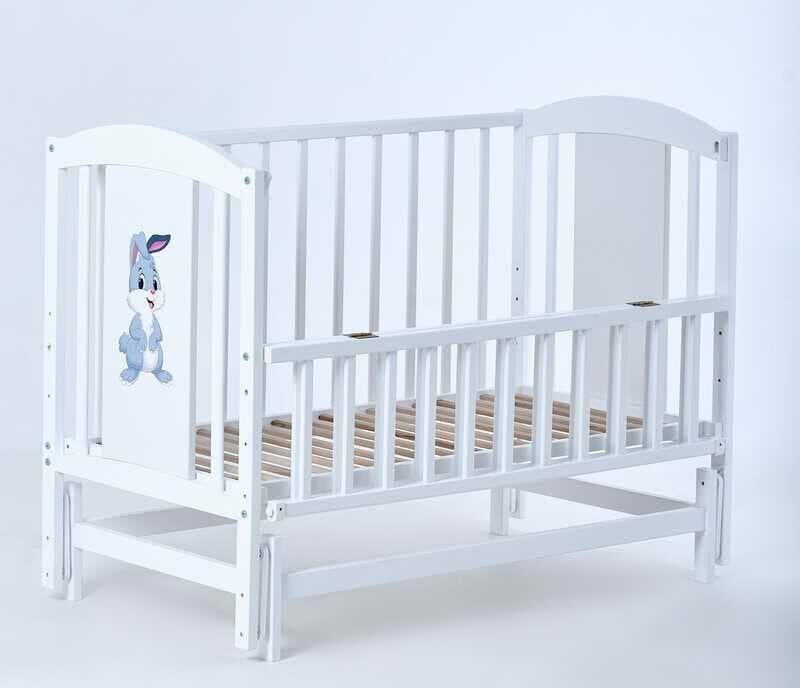 гр Ліжечко дитяче ЛІЛІ-2 "Зайчик" (1) шарнір-підшипник з відкидною боковиною, (білий)