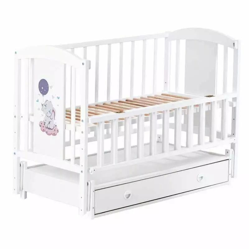 гр Ліжечко дитяче ЛІЛІ "Слоник" (1) шарнір-підшибник з відкидною боковиною+шухляда, (білий)