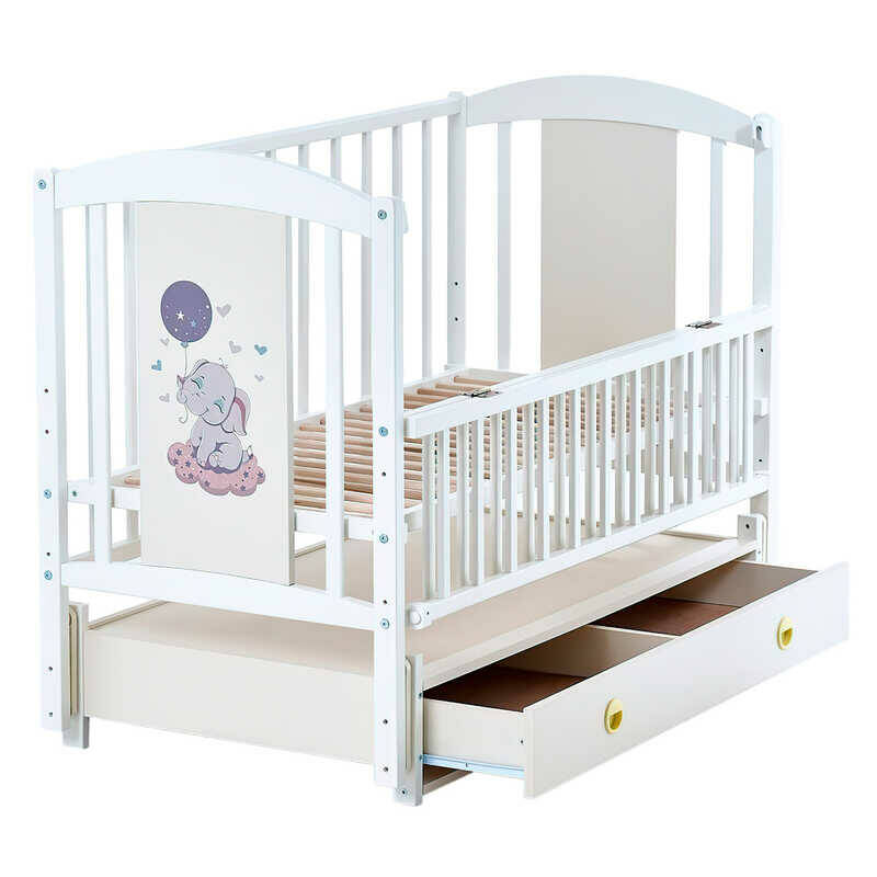гр Ліжечко дитяче ЛІЛІ "Слоник" (1) шарнір-підшипник з відкидною боковиною+шухляда, (слонова кістка)