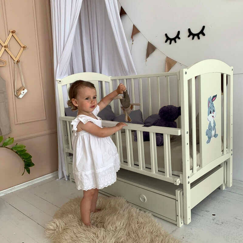 гр Ліжечко дитяче ЛІЛІ "Зайчик" (1) шарнір-підшибник з відкидною боковиною+шухляда, (Слонова кістка)
