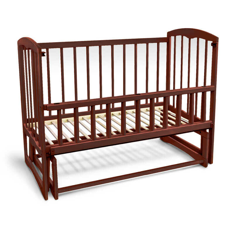 гр Ліжечко дитяче "Спимо" маятник, відкидний борт, вільха - колір шоколад