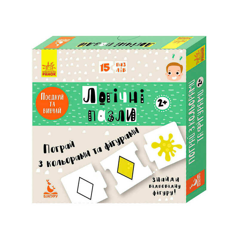 гр Логічні пазли "Пограй з кольорами та фігурами 2+" КН889003У (14) "Ранок", 15 двобічних карток-пазлів, в коробці