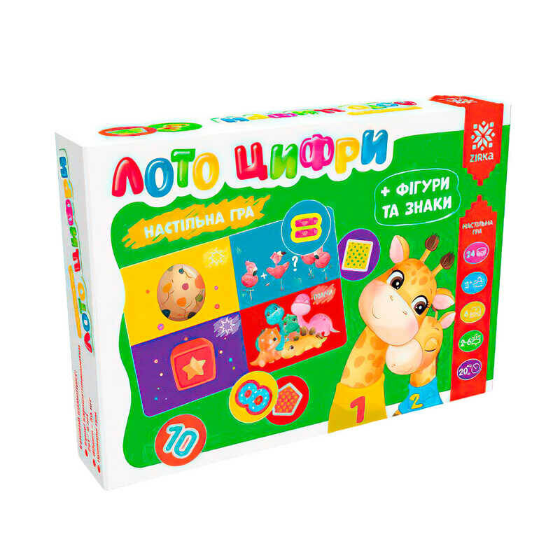 гр Лото “Цифри + фігури, знаки та асоціації” 129233 (5) "Ранок" 6 карток, 24 фішки, в коробці