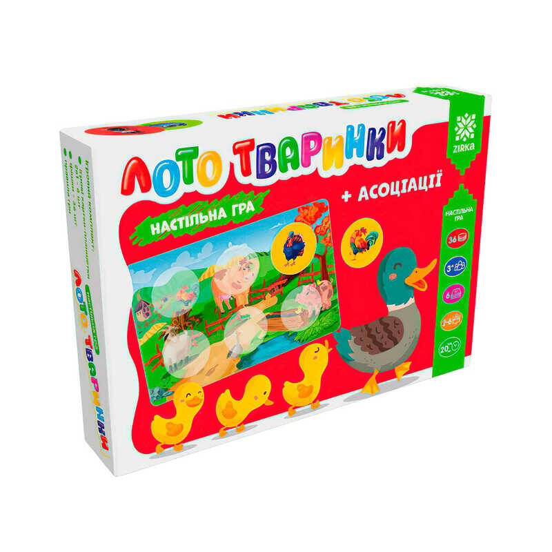 гр Лото “Тваринки + асоціації” 128527 (5) "Ранок" 6 карток, 36 фішок, в коробці