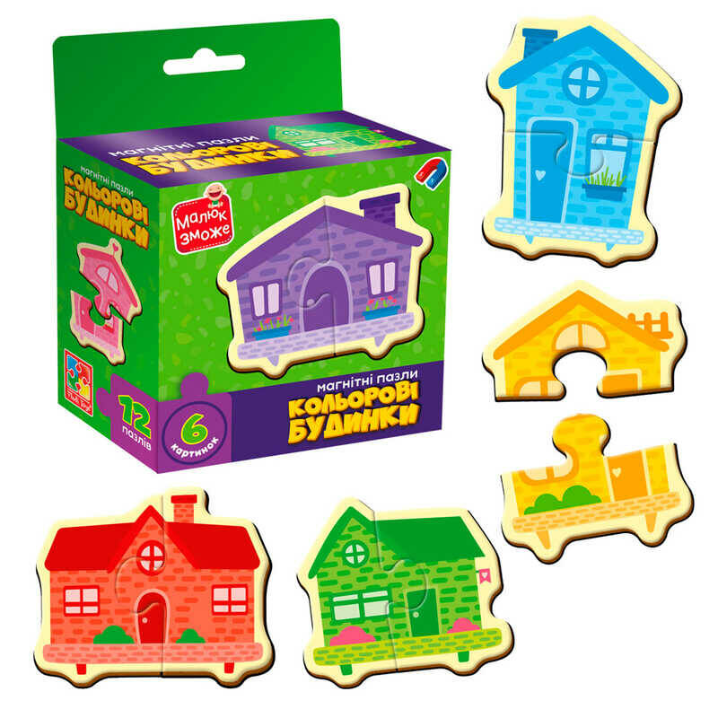 гр Магнітні пазли "Кольорові будинки" VT1733-03 (20) "Vladi Toys", 6 картинок (12 деталей), в коробці
