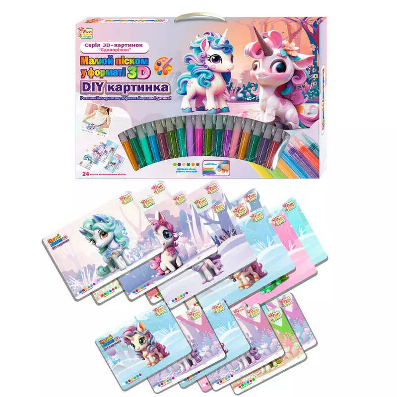 гр Малюй піском 44323 (12) "4FUN Game Club", 24 картки, 16 кольорів піску, 6 мольбертів, щітка, в коробці
