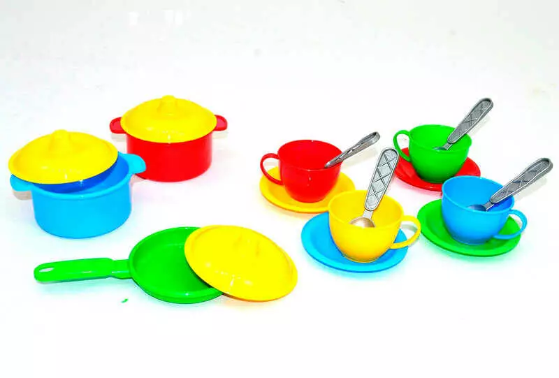 гр "Маринка 1" 0687 (24) "Technok Toys" 2 каструлі, сковорідка, 3 кришки, 4 чайні сервізи, в пакеті